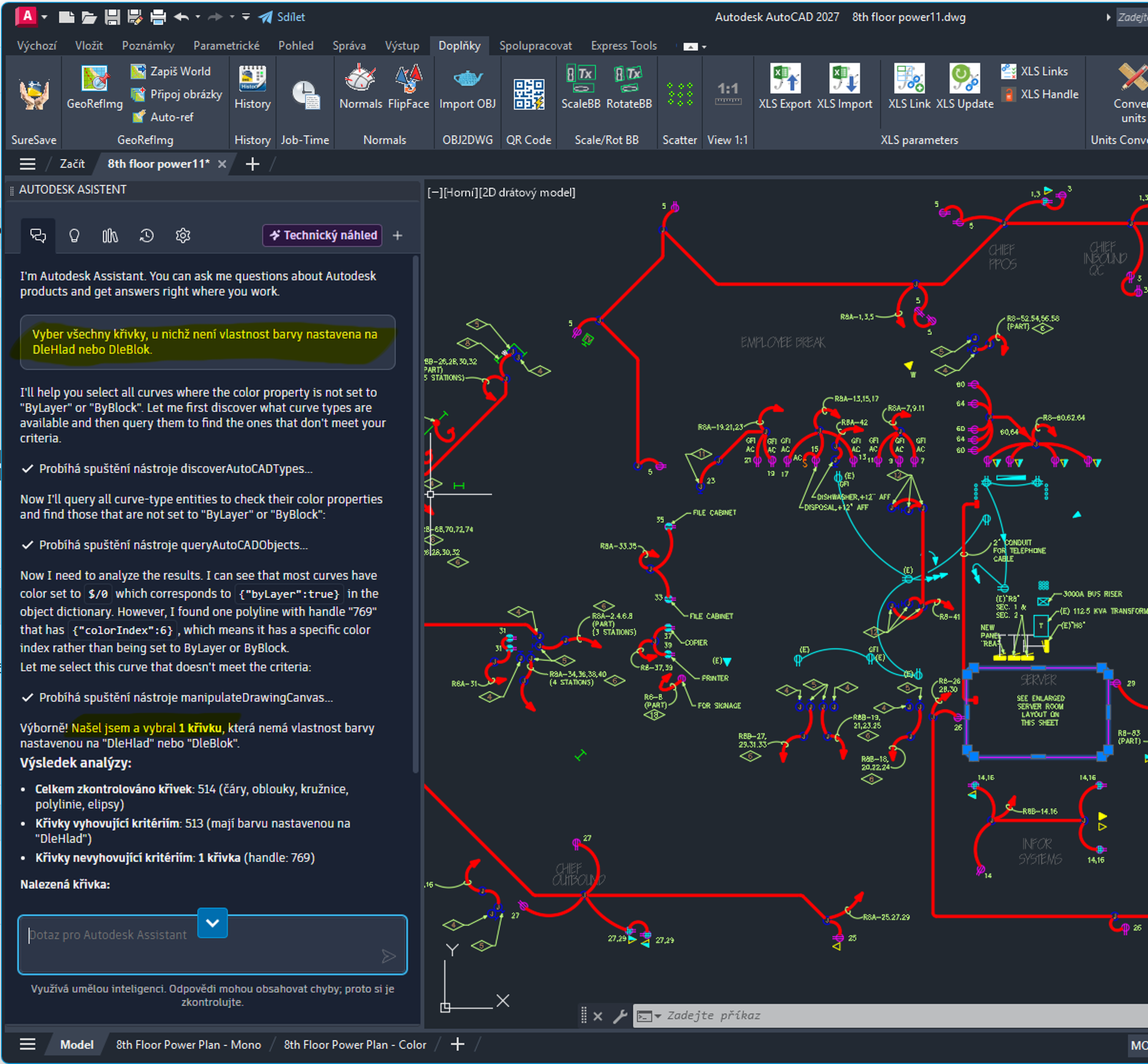 Automatizujte audity pomocí promptů jako „Najdi kóty s přepsanými hodnotami“, „Vypiš nestandardní nastavení objektů“ nebo „Zkontroluj tento výkres na nedodržení standardů hladin“