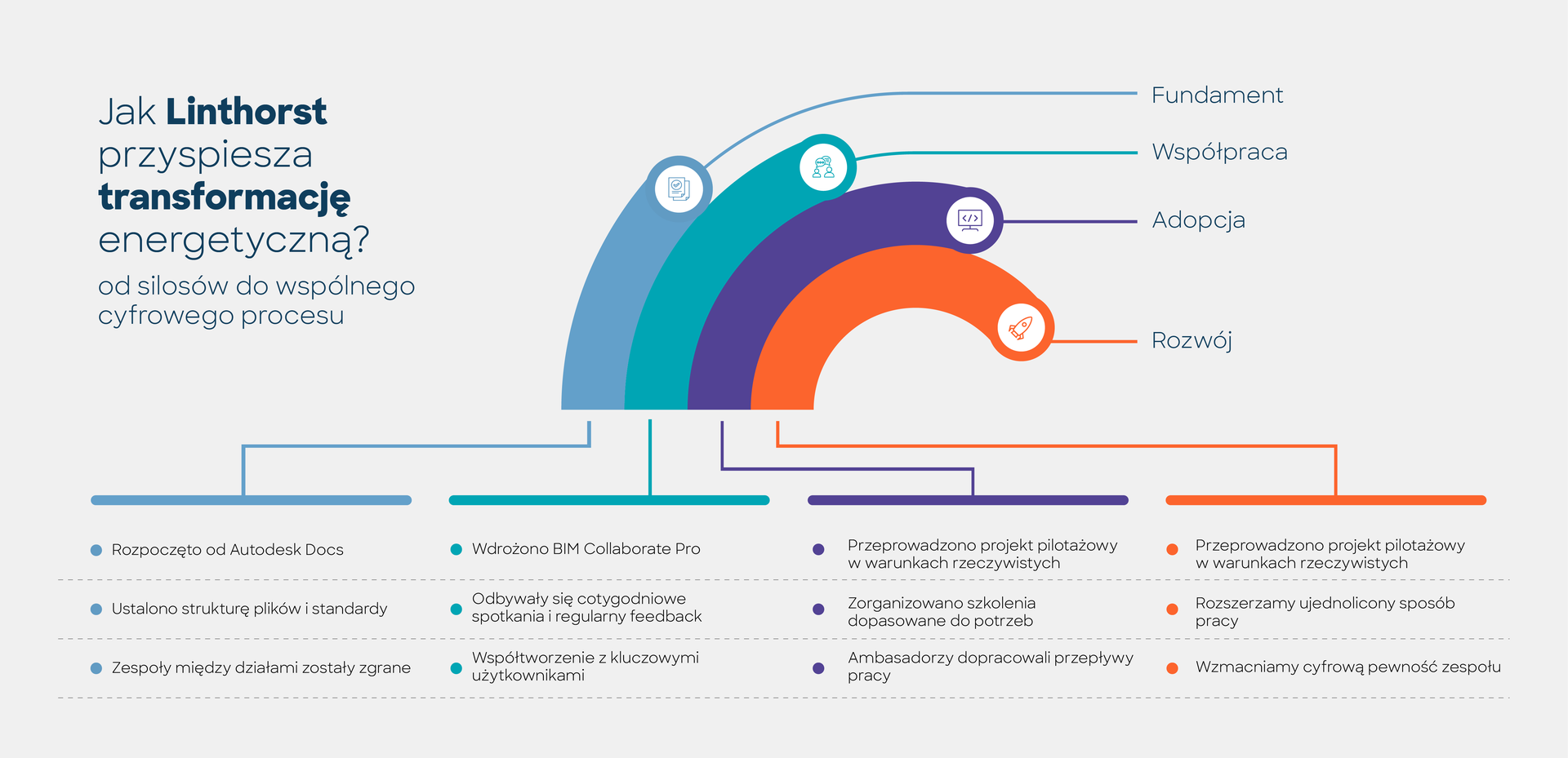 Takie podejście pozwoliło Linthorst wykorzystać Autodesk Construction Cloud (ACC) nie tylko jako narzędzie, lecz jako platformę wspierającą zmianę kultury pracy. Umożliwiło bezpieczne udostępnianie danych wewnętrznie i z partnerami oraz stworzyło fundament pod kolejne etapy cyfryzacji.